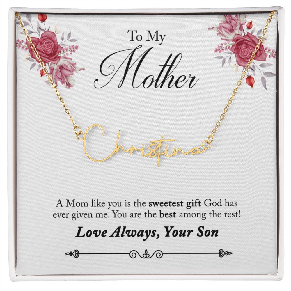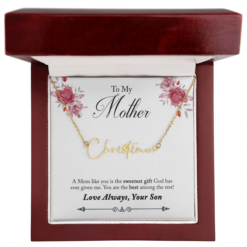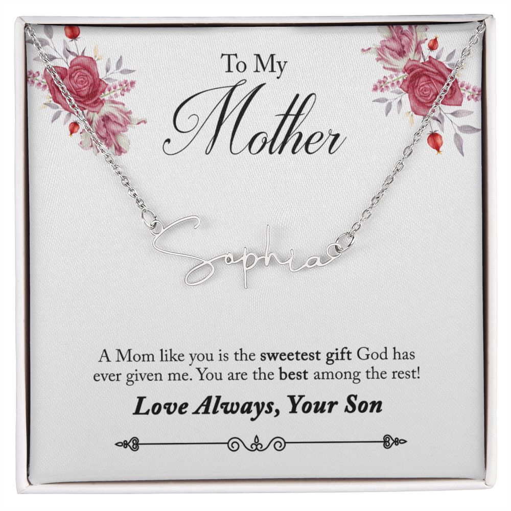 “A mom like you is the sweetest gift God has ever given me. You are the best among the rest! Love Always, Your Son”