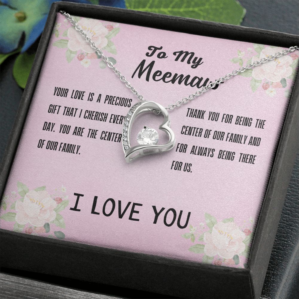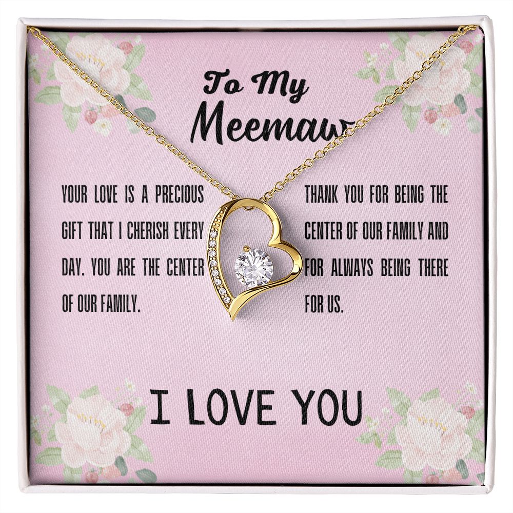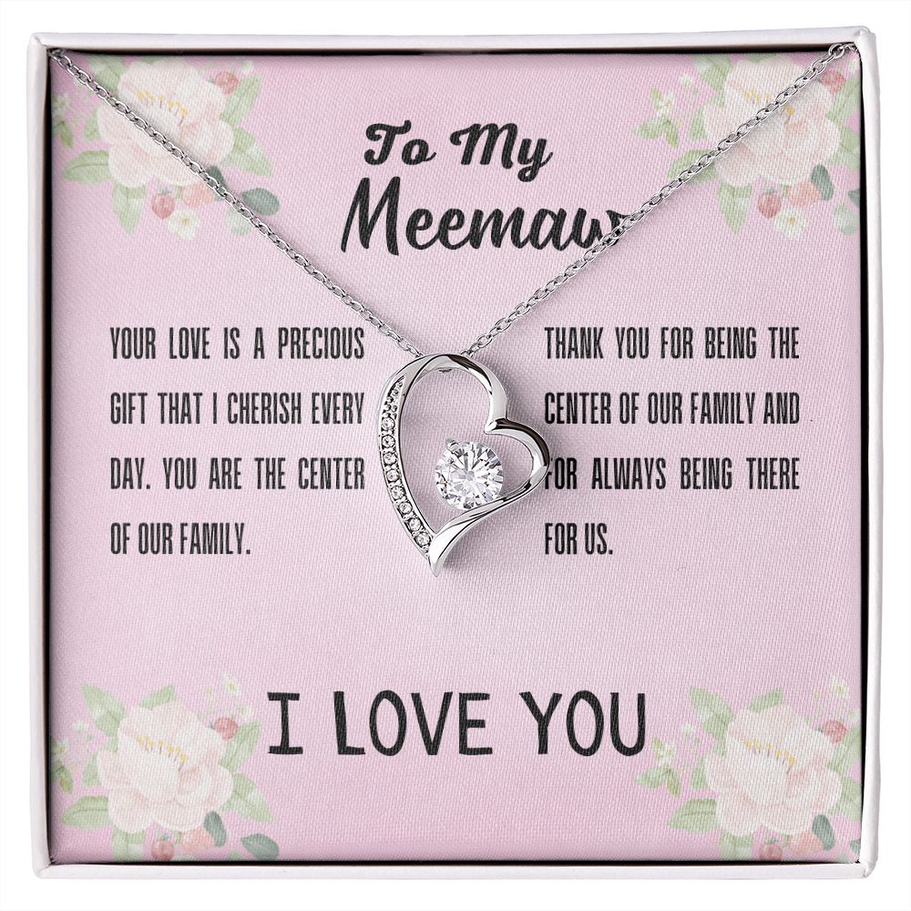 The dazzling Forever Love Necklace is sure to make her heart melt! This necklace features a stunning 6.5mm CZ crystal surrounded by a polished heart pendant embellished with smaller crystals to add extra sparkle and shine. Beautifully crafted with either a white gold or yellow gold finish, be sure to give her a classic gift she can enjoy everyday.