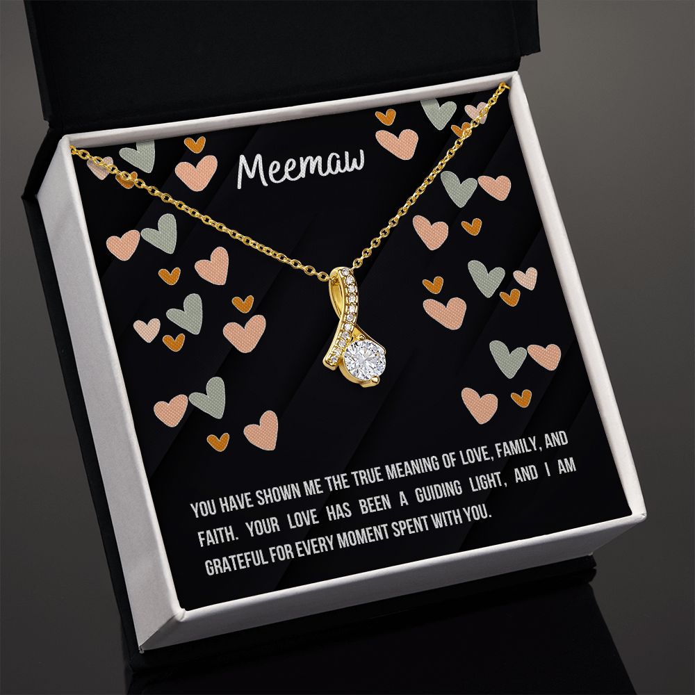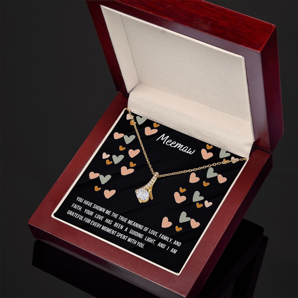 Imagine her reaction when she opens this stunning gift! The Alluring Beauty necklace features a petite ribbon shaped pendant that is sure to dazzle your special someone. Whether it's a birthday or anniversary, make sure to get her a gift she will love for years to come.