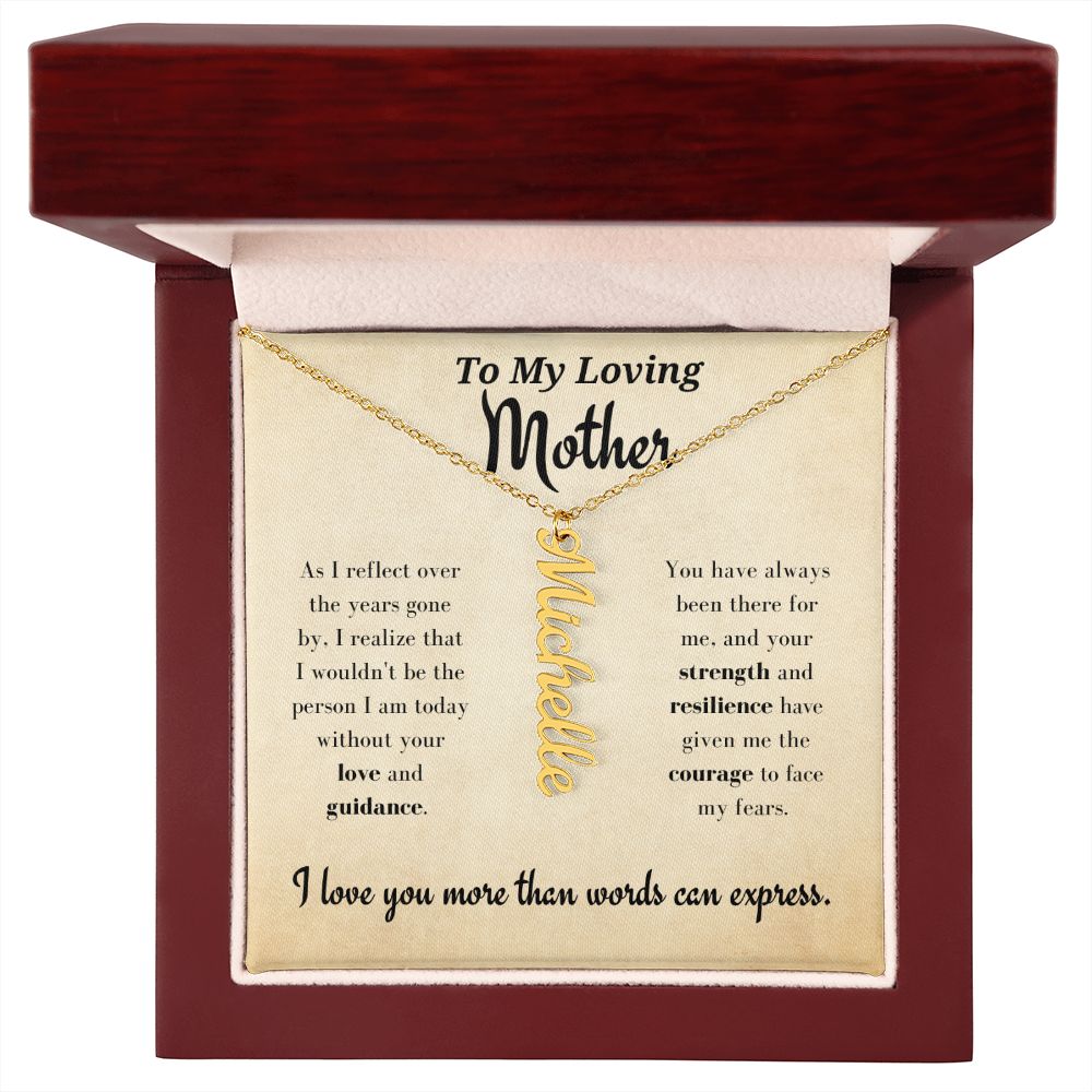 "As I reflect over the years gone by, I realize that I wouldn't be the person I am today without your love and guidance. You have always been there for me, and your strength and resilience have given me the courage to face my fears. I love you more than words can express"